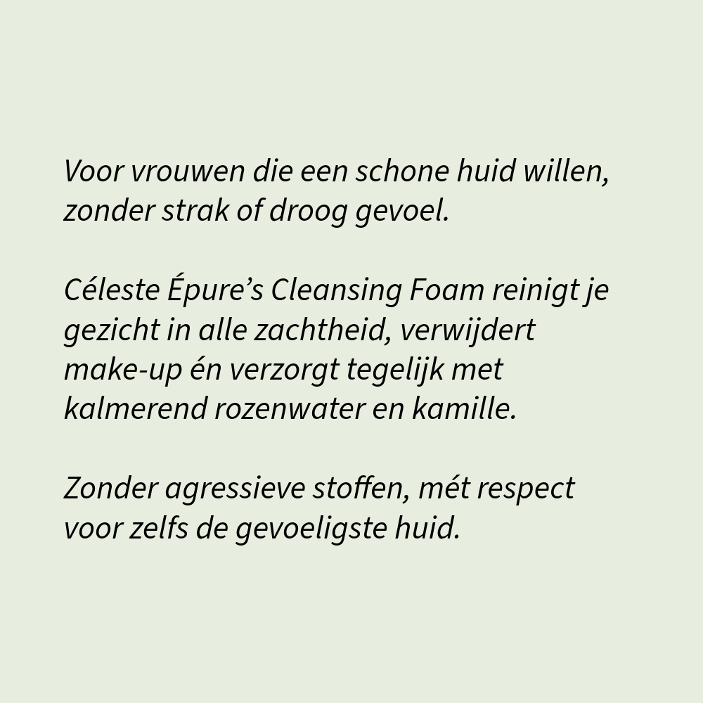 De Cleansing Foam van Céleste Épure verwijdert make-up en onzuiverheden in alle zachtheid, zonder de huidbarrière te verstoren.