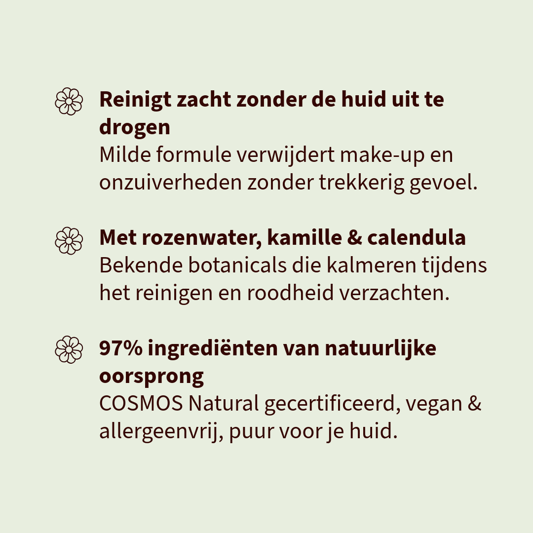 ✓ Kalmeert en verzacht met rozenwater, kamille en calendula
