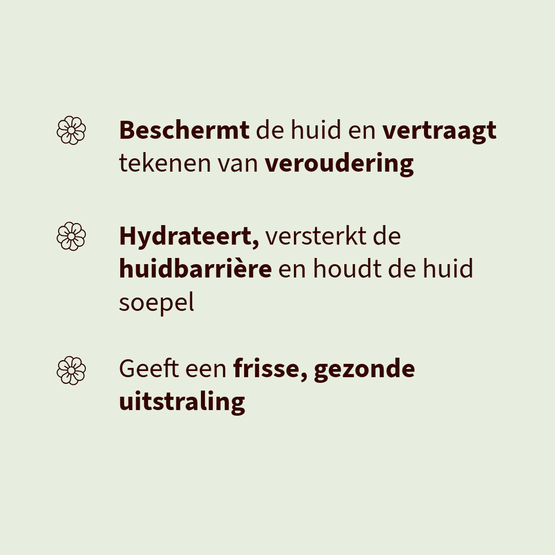 Je kunt een kleine hoeveelheid mengen met je dag- of nachtcrème, of aanbrengen vóór je moisturizer als een lichte, beschermende basis.