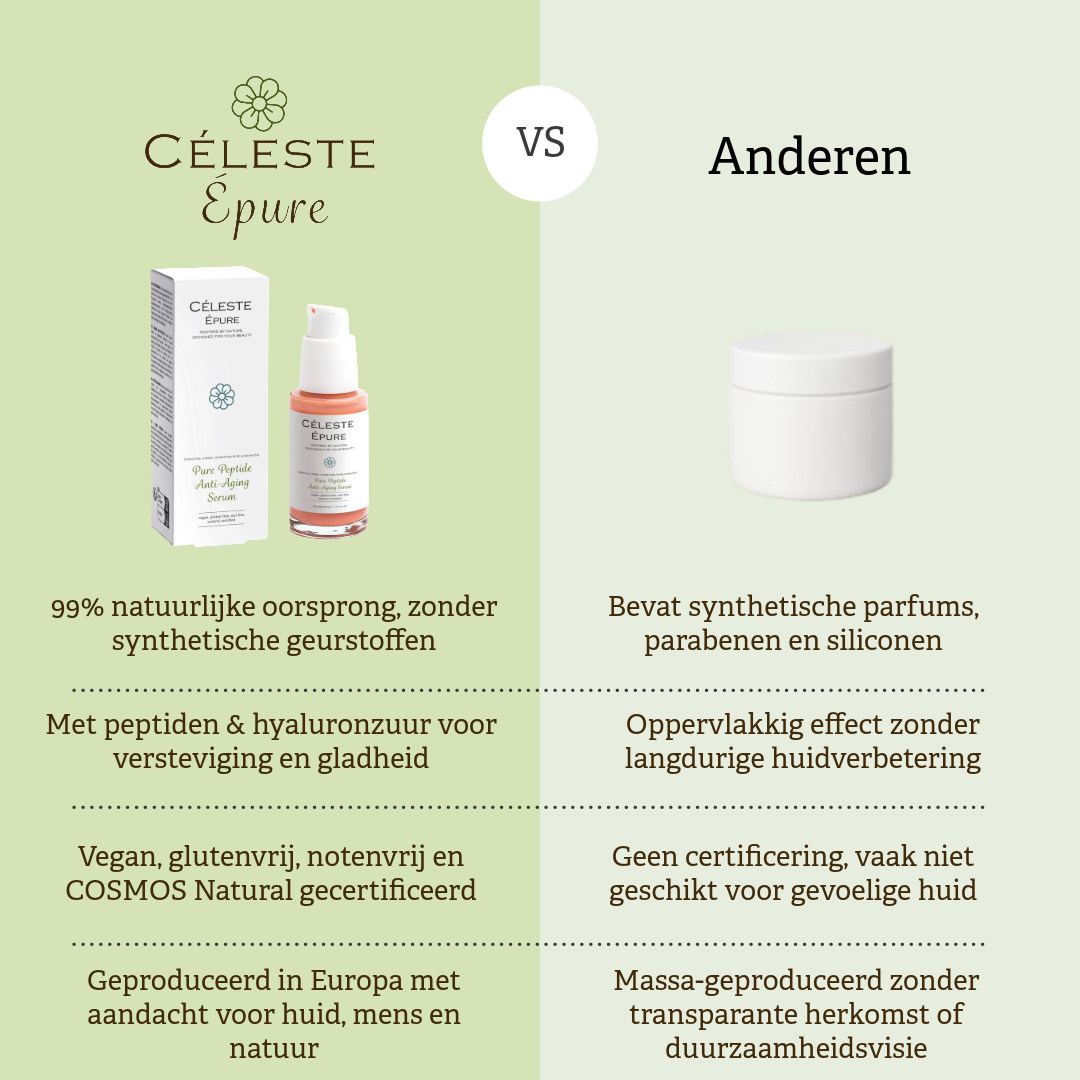 Naarmate de huid ouder wordt, neemt volume af, verliest ze veerkracht en helderheid. In tegenstelling tot conventionele anti‑age producten die soms belastende ingrediënten bevatten, kiest Céleste Épure voor zuivere formules zonder concessies.