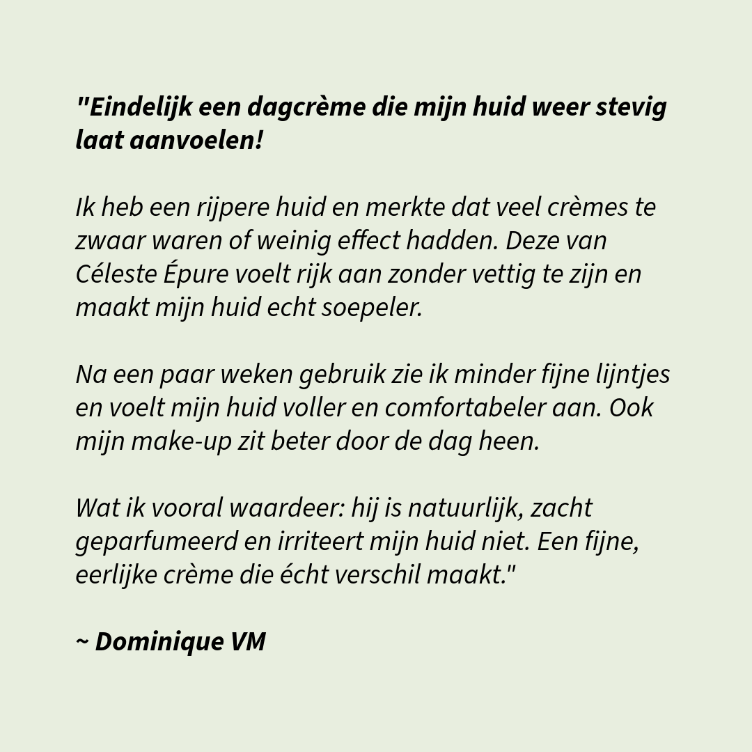 Mijn huid is vaak trekkerig en gevoelig, vooral 's avonds. Sinds ik deze crème gebruik, voelt mijn huid ‘s ochtends veel zachter aan en zie ik minder roodheid.